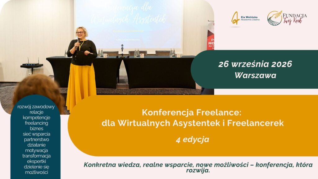 Zapraszamy Cię do udziału w stacjonarnej konferencji dedykowanej Wirtualnym Asystentkom oraz innym freelancerkom – zarówno tym z doświadczeniem, jak i tym, które dopiero stawiają pierwsze kroki w branży. To nie tylko spotkanie branżowe – to miejsce pełne wiedzy, wsparcia, odwagi i nowych możliwości.